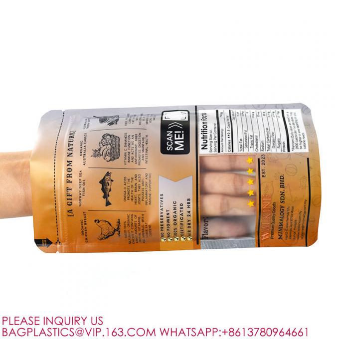 Дизайн на заказ печатный многоразовый рюкзак прозрачное пластиковое окно упаковка водонепроницаемая подъемная сумка перезамыкаемая алюминиевая фольга сумка 5 кг 10 кг кошачьи продукты питания упаковка плоский дно домашний питомец рюкзак